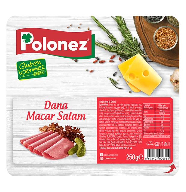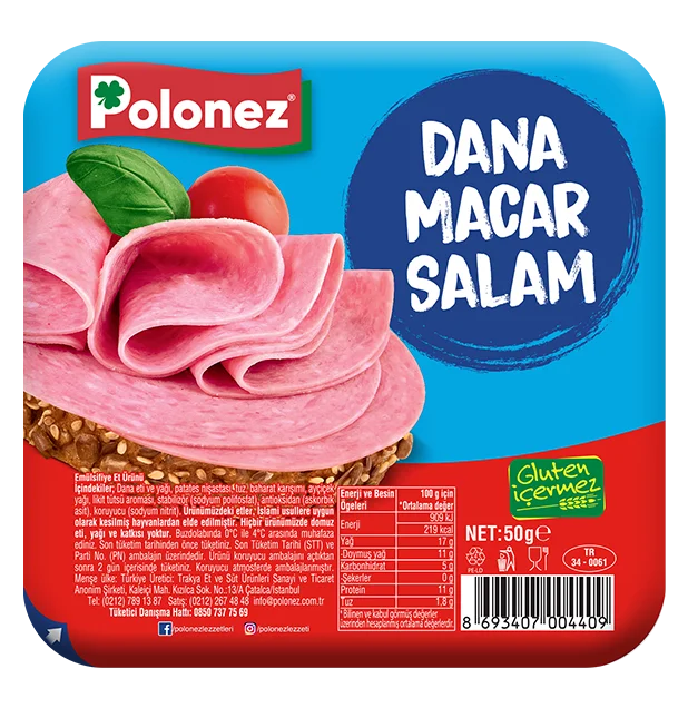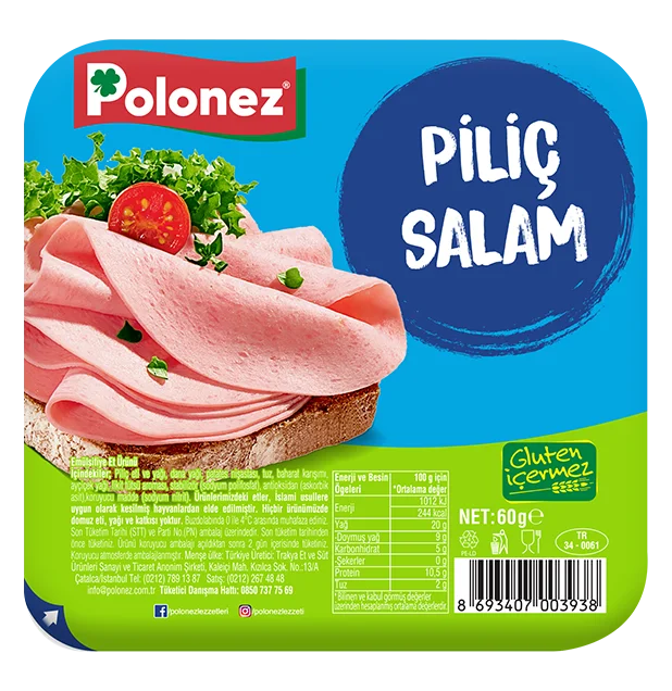 İstanbul Çatalca’da bulunan tesislerimizde üretim yaparak, 38 yıldır değişmeyen lezzetimizle sizleri buluşturuyoruz. Tesislerimizde modern teknolojik gelişmeler doğrultusunda hijyenik, kaliteli ve lezzetli ürünlerimizi üretmekteyiz. Üretimimizde sadece Polonez kalite kriterlerini ve helal kesim standartlarını karşılayabilen dana, hindi ve tavuk etleri kullanmaktayız. Ürünlerimizin hiçbirinde kesinlikle domuz eti, domuz yağı ve domuz kökenli katkı maddesi kullanılmamaktadır.