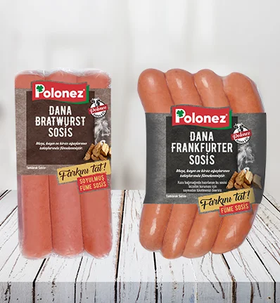 %100 dana etinden üretilen, özel baharatların kullanıldığı, meşe, kayın ve kiraz ağaçlarında fümelenen Polonez Dana Bratwurst ve Frankfurter sosisler, sofraları farklı lezzetlerle tanıştırıyor. Üç farklı ağaç kabuğunun talaşında tütsülenen sosislerin aromaları, klasik sosislerden oldukça farklı