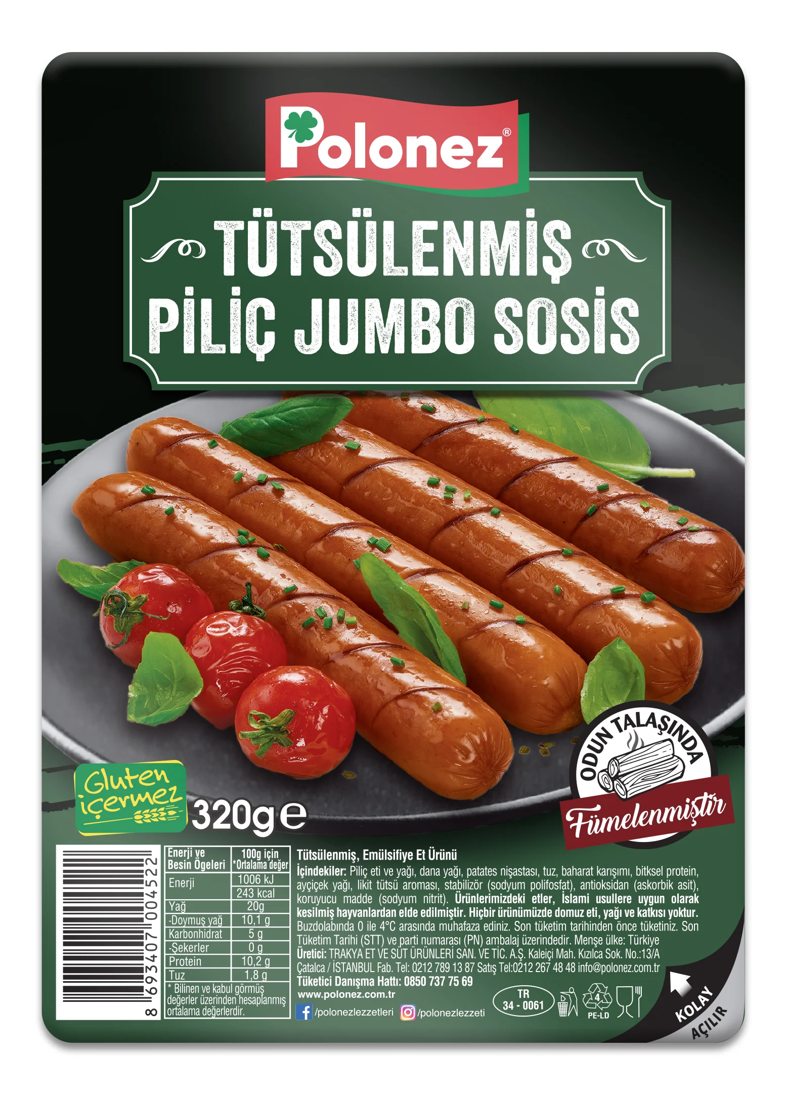 Polonez, Tütsülenmiş Piliç Jumbo Sosis ürünüyle şarküteri kategorisindeki yenilikçi ürün gamını genişletiyor. Meşe, kayın ve kiraz ağacında tütsülenen ürün, glütensiz içeriğiyle de dikkat çekiyor