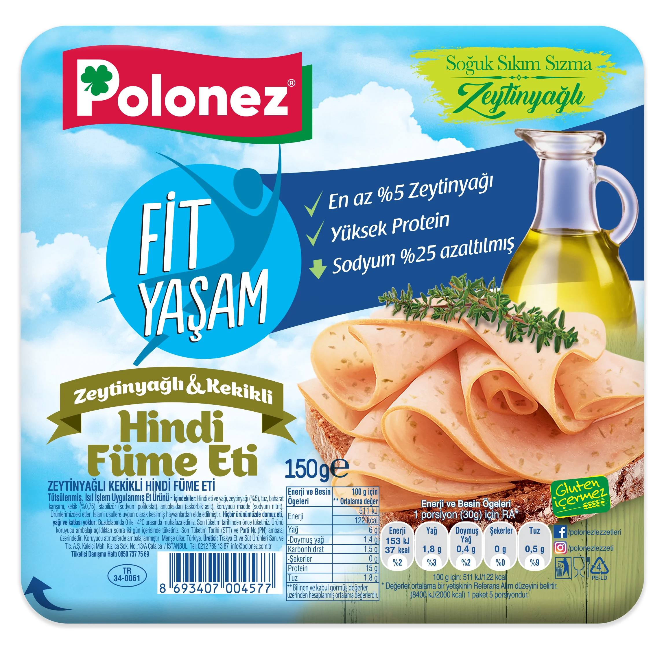 Polonez, yüksek protein, düşük yağ ve yüzde 25 daha az sodyum içeren Fit Yaşam ürünlerine bir yenisini daha ekledi. Soğuk Sıkım Sızma Zeytinyağı ve kekiği hindi fümede buluşturan lezzet, Türkiye'de ilk ve tek