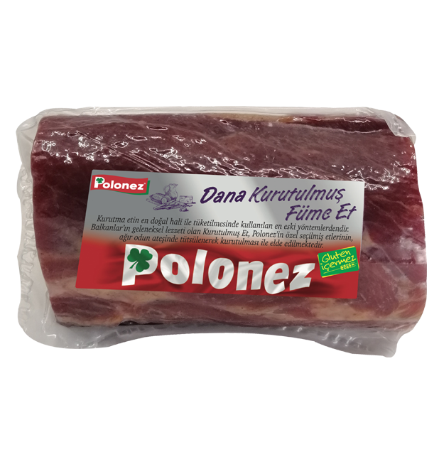 Polonez’in özel seçilmiş taze dana bonfile ve kontrafile etlerinin tuz ile kaplanıp, kürlenip, doğal gürgen, meşe odun talaşları ile kurutulması ile üretilmektedir.